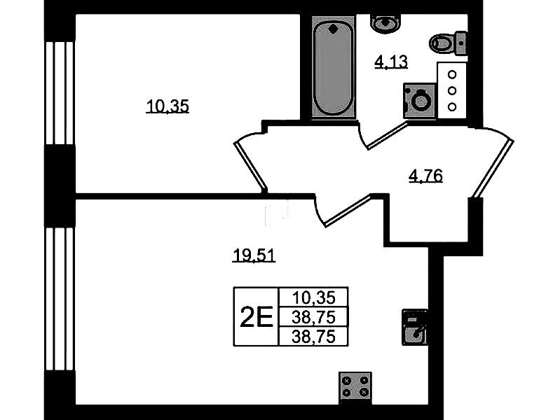 Однокомнатная квартира на 3-ем этаже 38,75 кв.м
