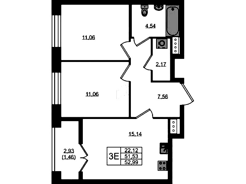 - Площадь52,99 м2