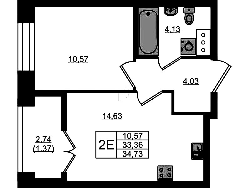 Однокомнатная квартира на 4-ом этаже 34,73 кв.м