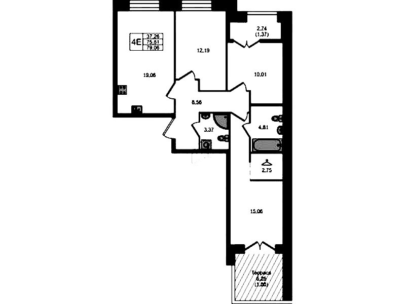 Трёхкомнатная квартира на 2-ом этаже 79,06 кв.м