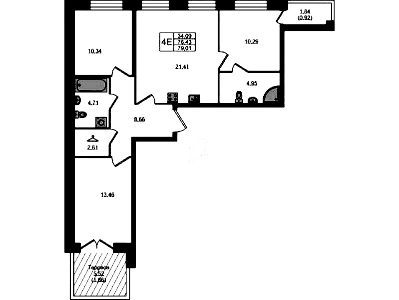 Трёхкомнатная квартира на 2-ом этаже 79,01 кв.м