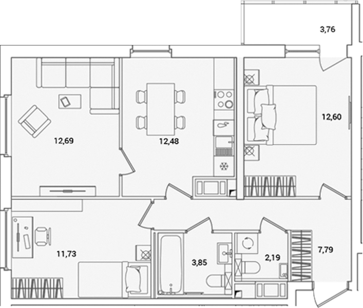 Трёхкомнатная квартира на 4-ом этаже 65,21 кв.м