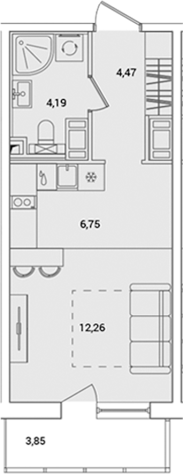 Квартира-студия на 11-ом этаже 28,83 кв.м
