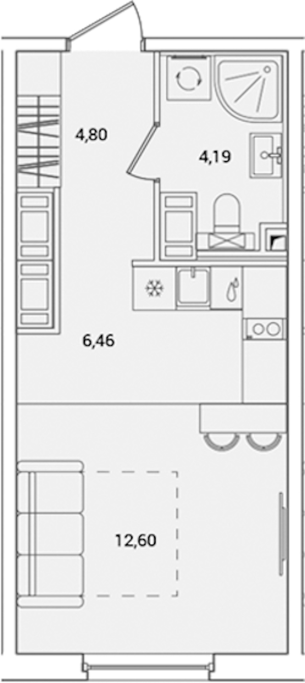 Квартира-студия на 25-ом этаже 28,05 кв.м