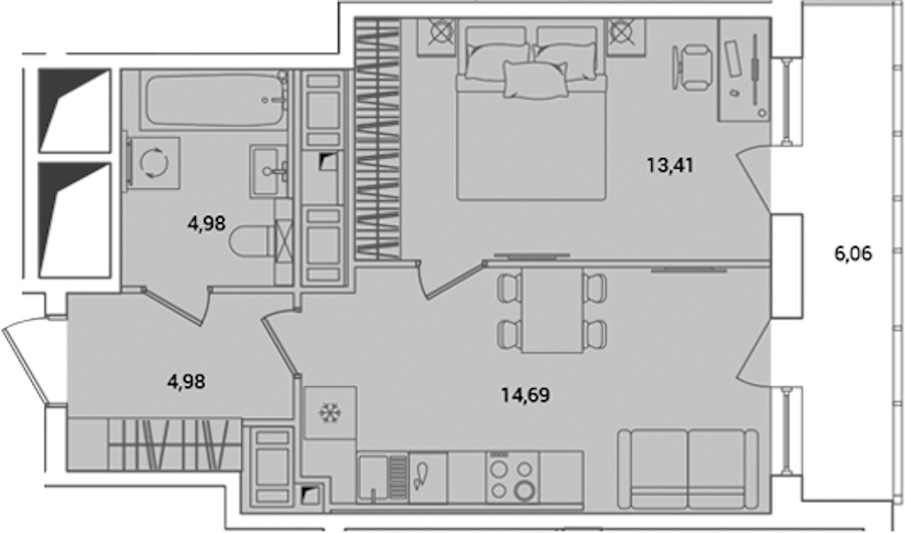 Однокомнатная квартира на 23-ем этаже 41,09 кв.м