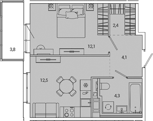 - Площадь кухни12,5 м2
