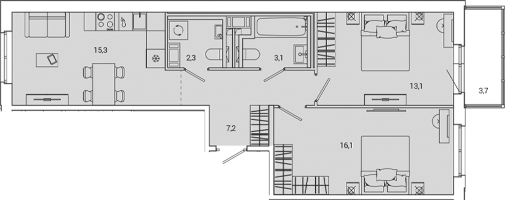 - Площадь кухни15,3 м2