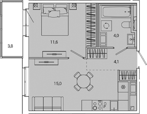 Однокомнатная квартира на 6-ом этаже 38,5 кв.м