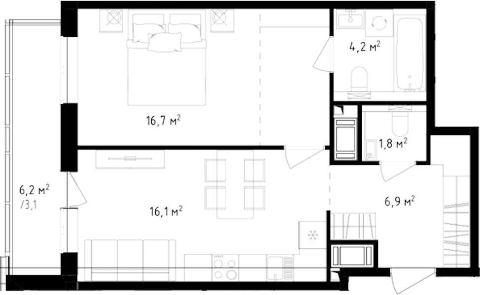 • Площадь кухни16,1 м2