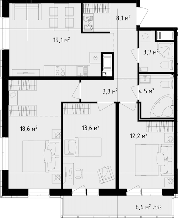 - Площадь кухни19,1 м2
