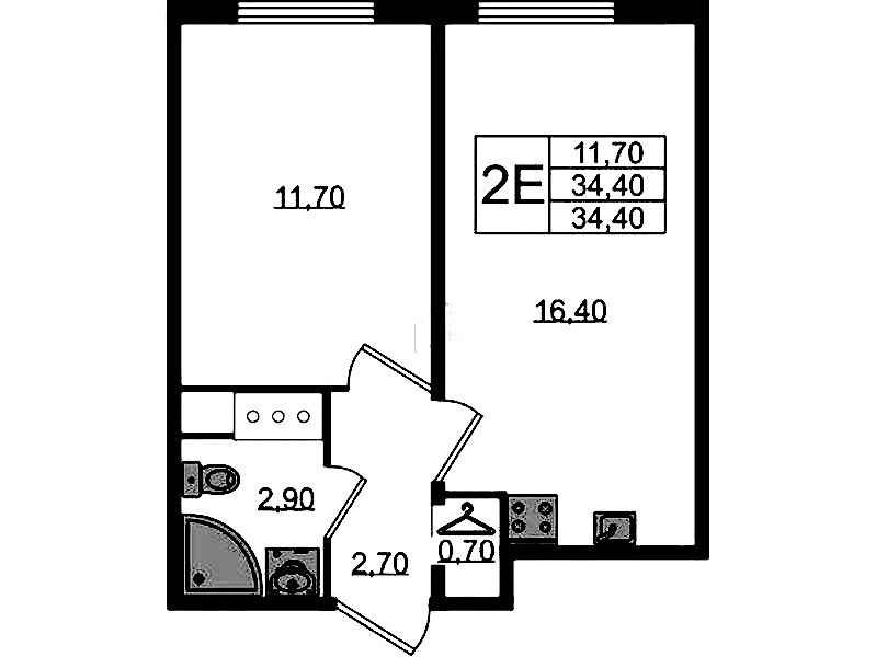 Однокомнатная квартира на 23-ем этаже 34,4 кв.м
