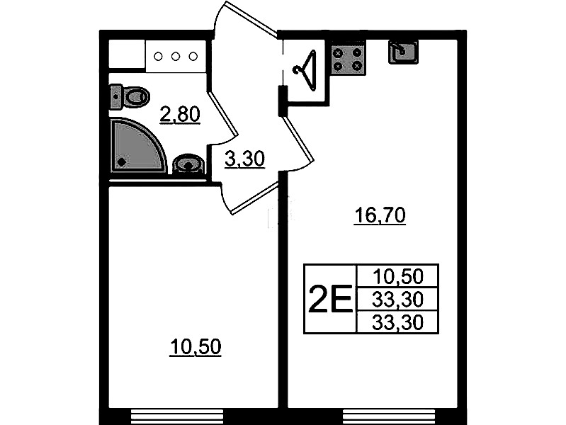 Однокомнатная квартира на 14-ом этаже 33,3 кв.м
