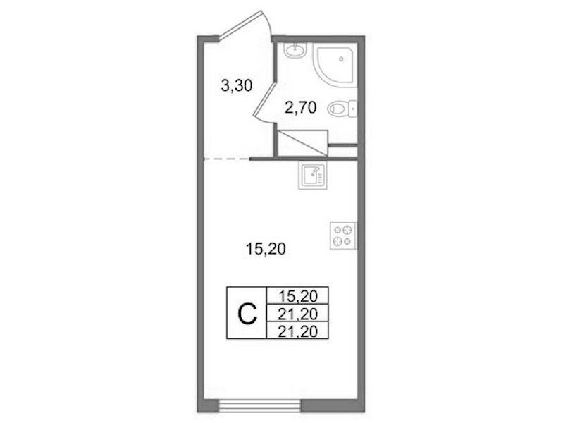 Квартира-студия на 7-ом этаже 21,2 кв.м