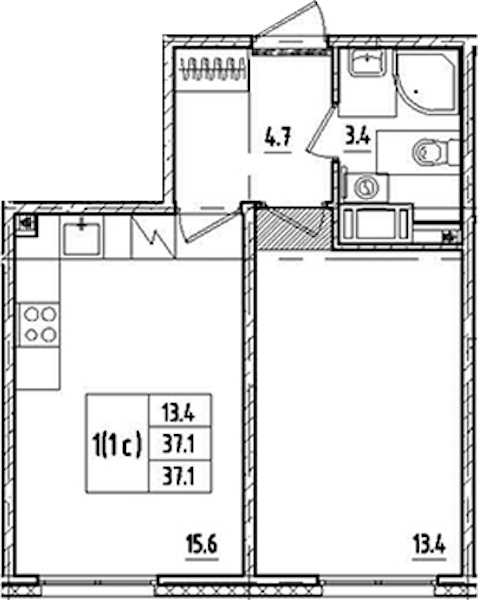 • Площадь37,1 м2