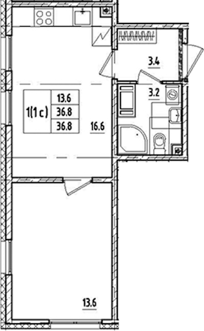 Однокомнатная квартира на 18-ом этаже 36,8 кв.м