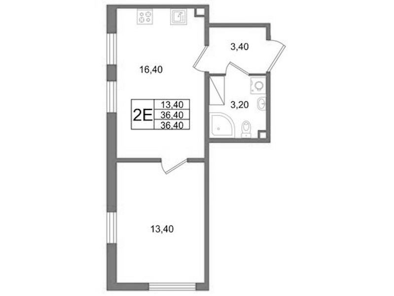Однокомнатная квартира на 8-ом этаже 36,4 кв.м