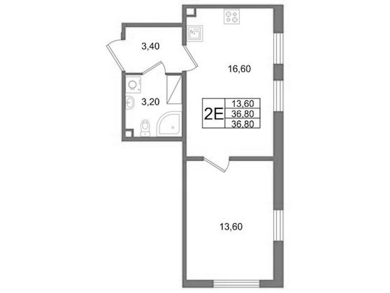 Однокомнатная квартира на 18-ом этаже 36,8 кв.м
