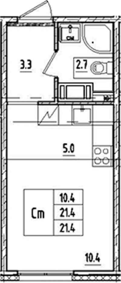 Квартира-студия на 14-ом этаже 21,4 кв.м