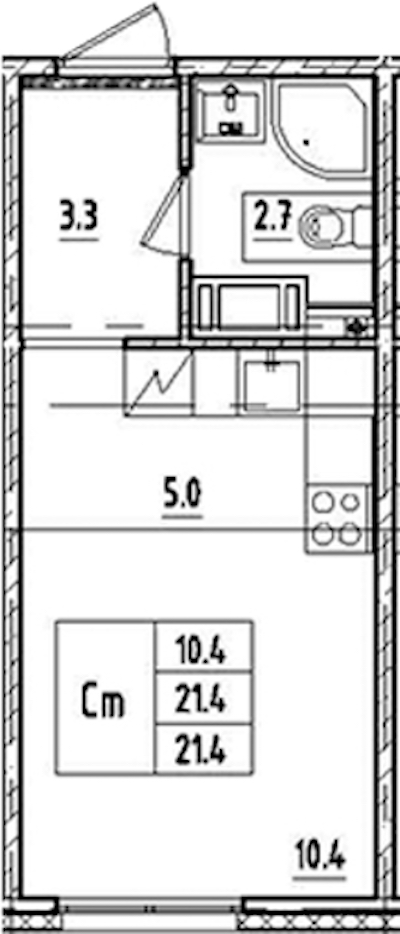Квартира-студия на 12-ом этаже 21,4 кв.м