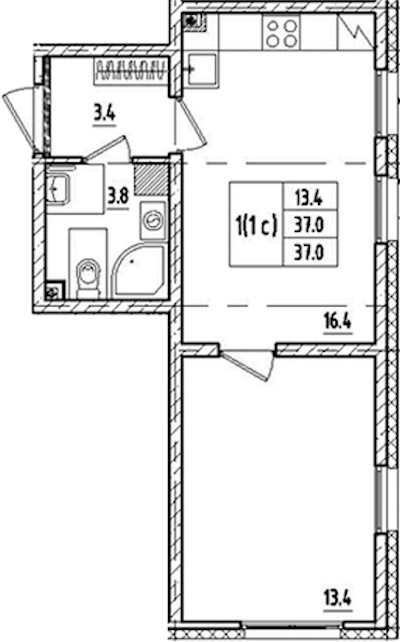 Однокомнатная квартира на 2-ом этаже 37 кв.м
