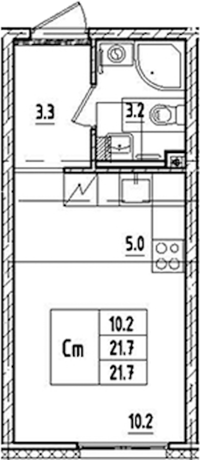 Квартира-студия на 2-ом этаже 21,7 кв.м