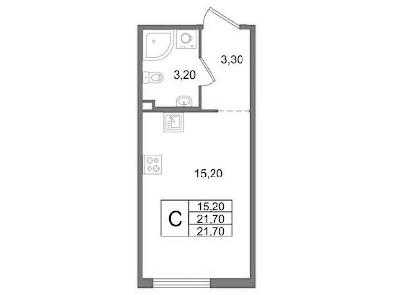 Квартира-студия на 2-ом этаже 21,7 кв.м