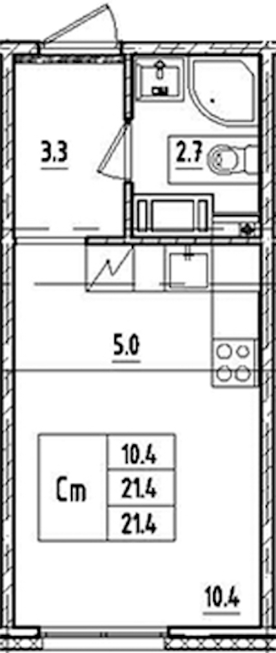 • Площадь21,4 м2