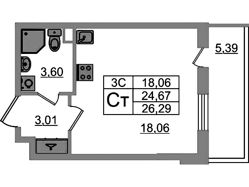 - Площадь24,67 м2