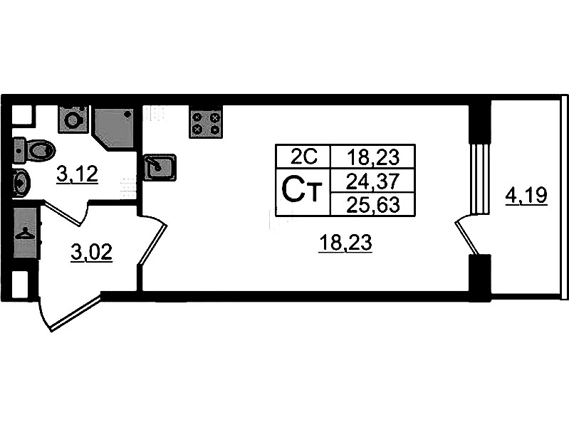 - Площадь24,37 м2