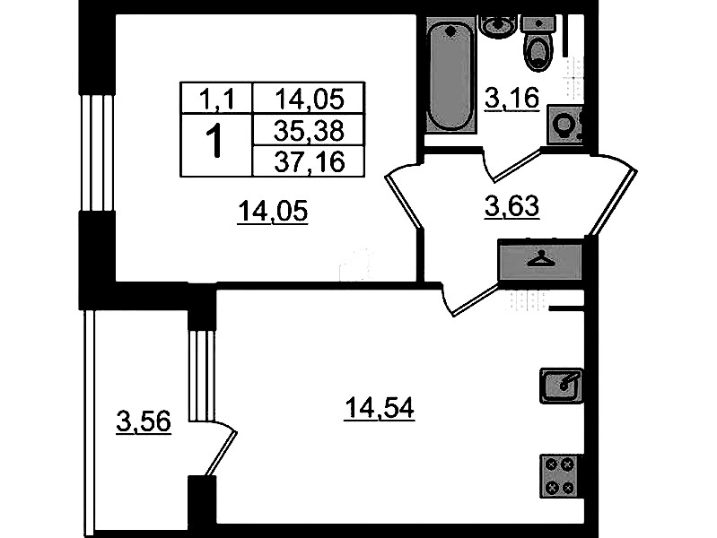 • Площадь кухни14,54 м2