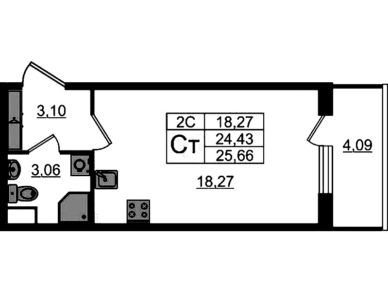 Квартира-студия на 2-ом этаже 24,43 кв.м