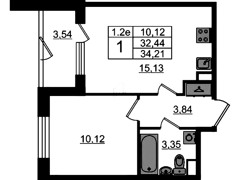 Однокомнатная квартира на 1-ом этаже 32,44 кв.м