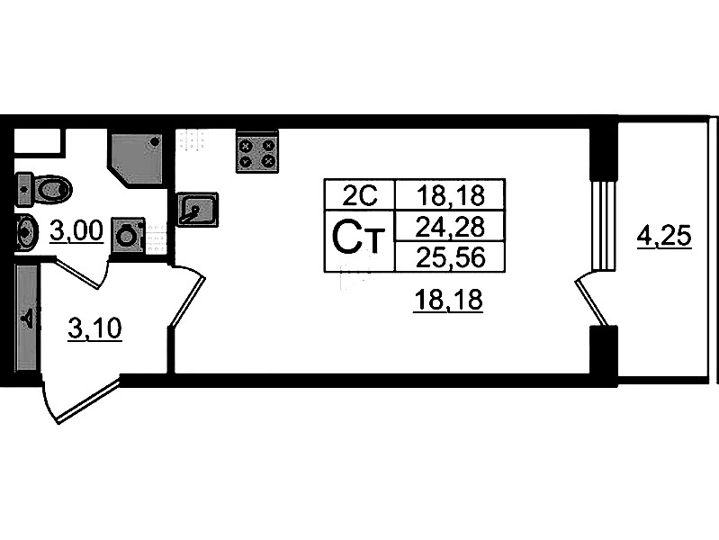 Квартира-студия на 4-ом этаже 24,28 кв.м