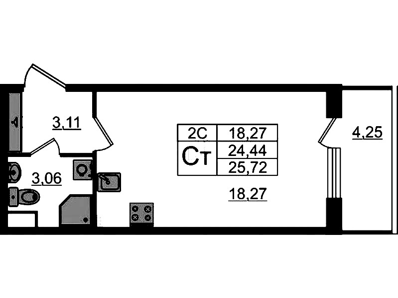 - Площадь24,44 м2