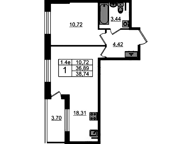 • Площадь кухни18,31 м2