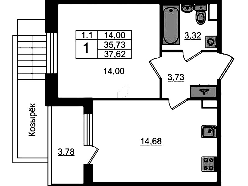 • Площадь35,73 м2