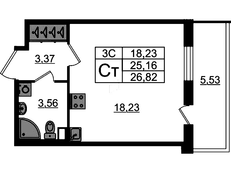 - Площадь25,16 м2