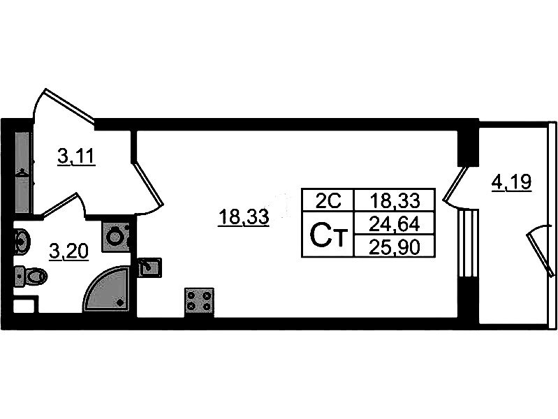 Квартира-студия на 1-ом этаже 24,64 кв.м