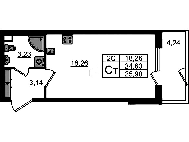 Квартира-студия на 1-ом этаже 24,63 кв.м