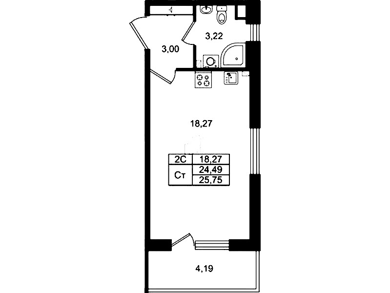 - Площадь24,49 м2
