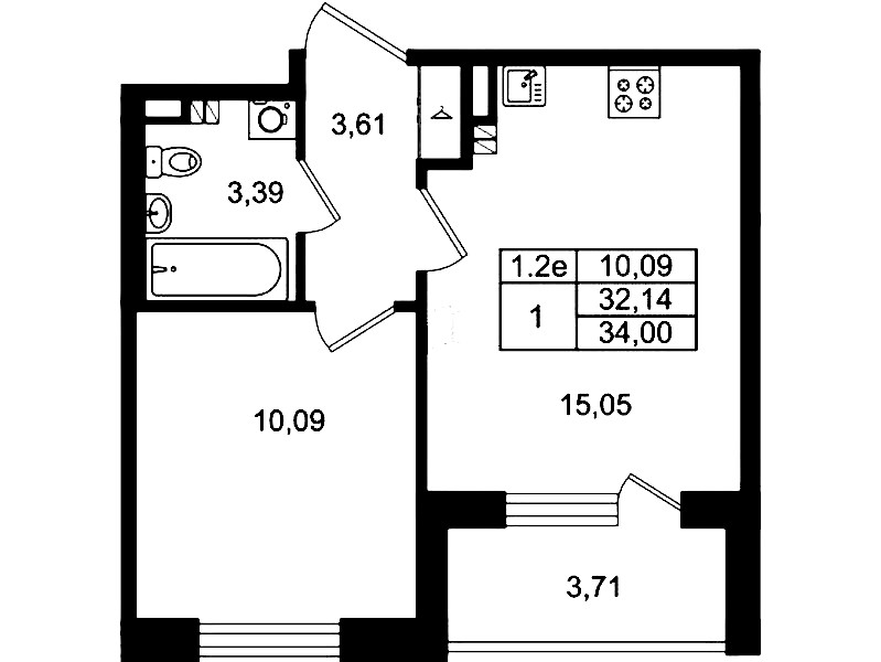 - Площадь кухни15,05 м2