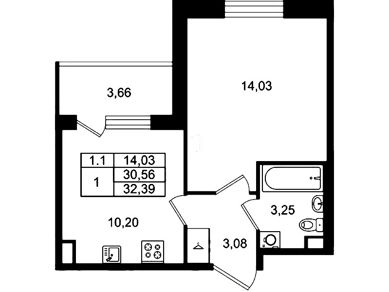 - Площадь30,56 м2