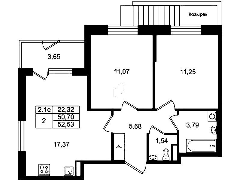 - Площадь кухни17,37 м2