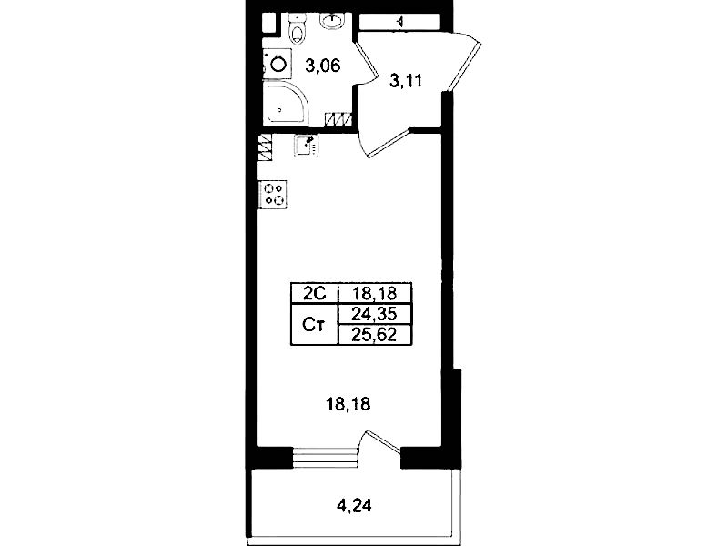 - Площадь24,35 м2