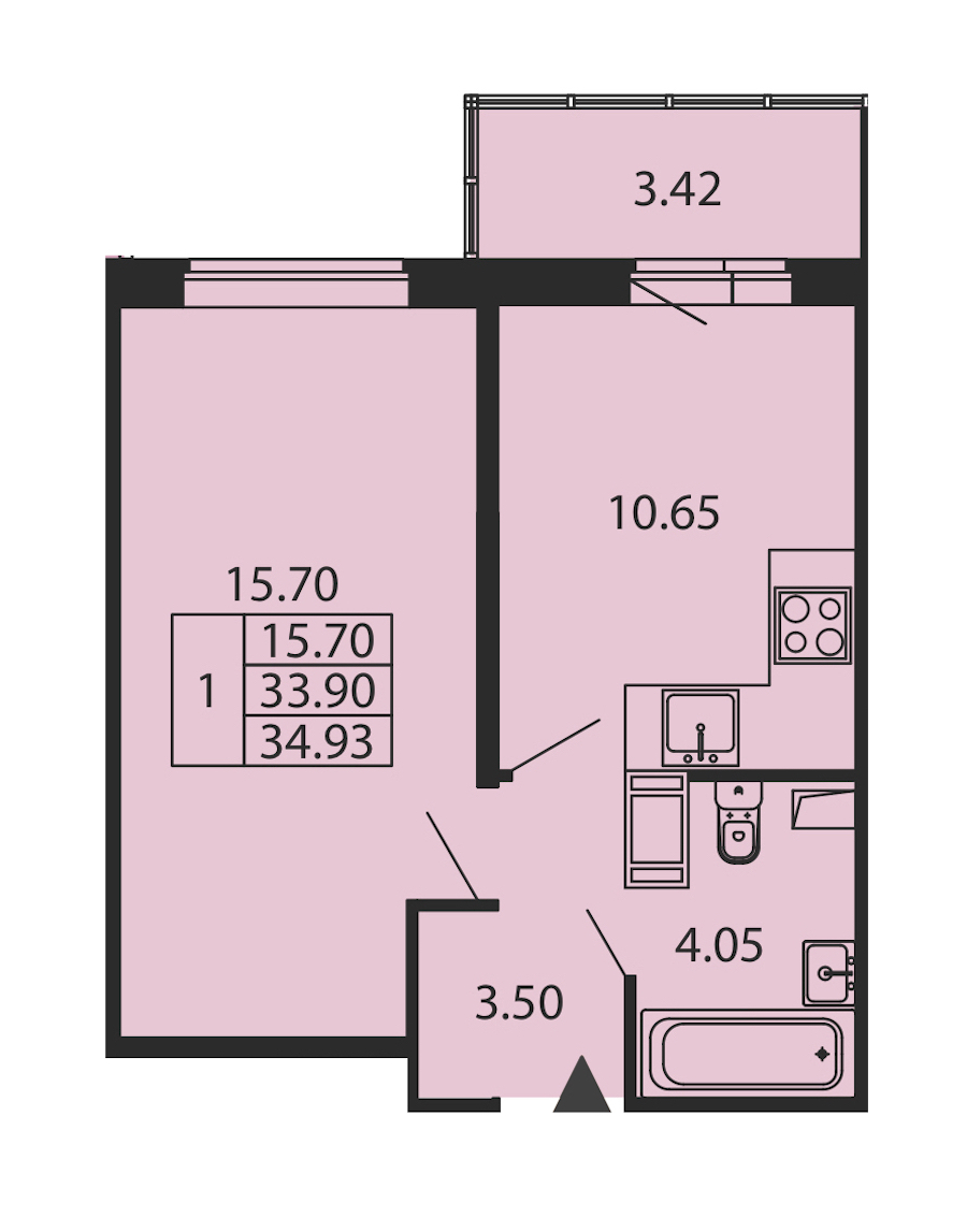 - Площадь33,9 м2
