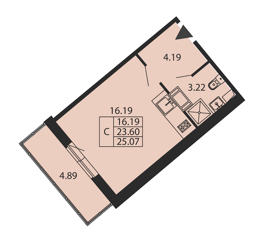 Квартира-студия на 12-ом этаже 23,6 кв.м