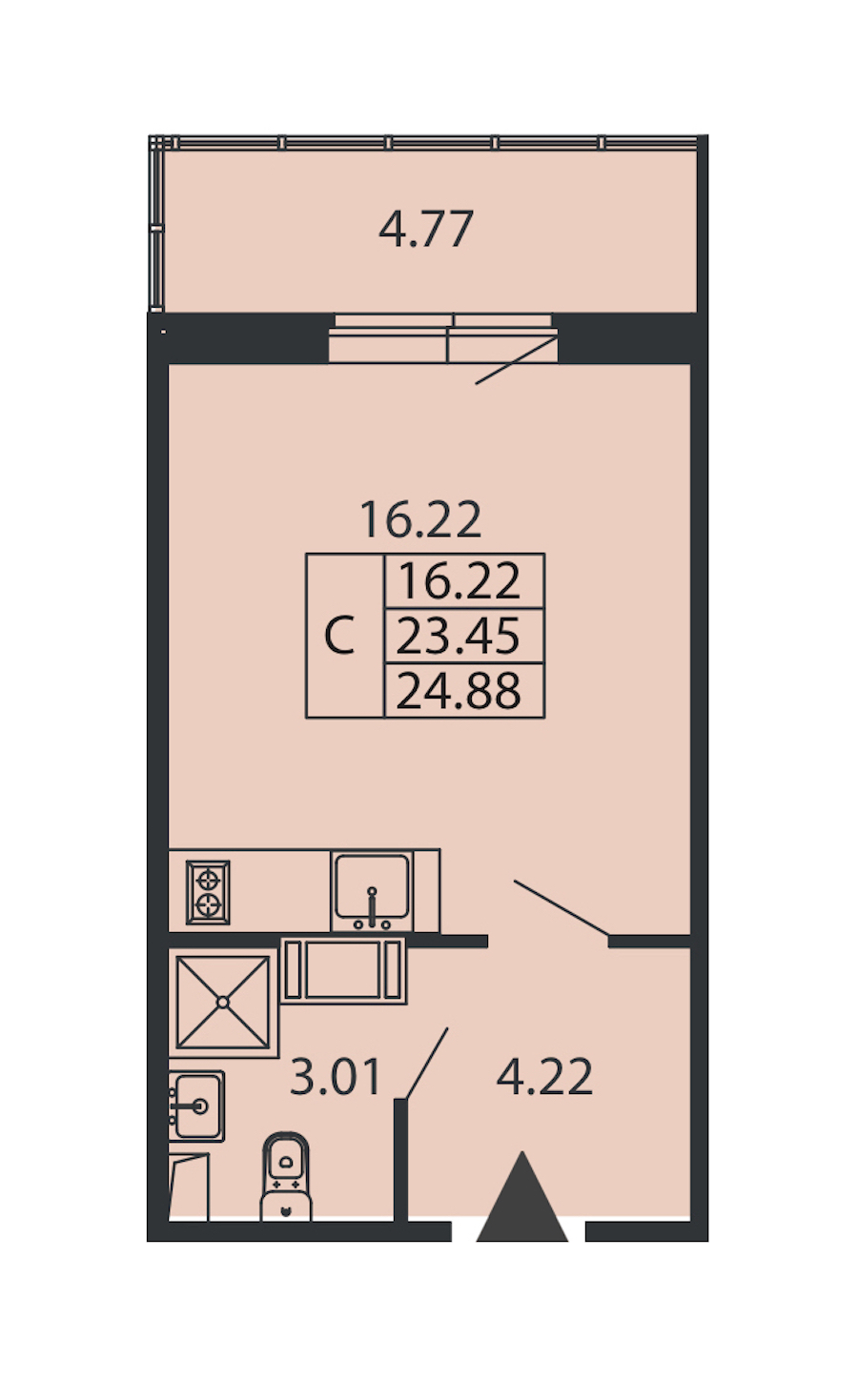- Площадь23,45 м2