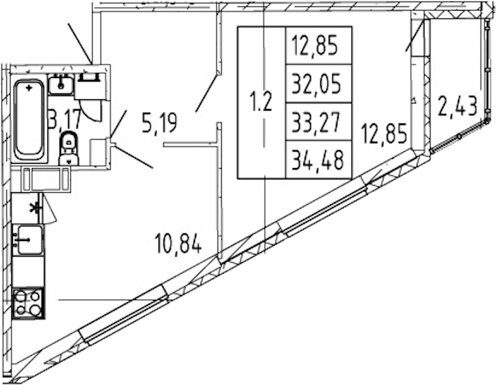 Однокомнатная квартира на 4-ом этаже 32,05 кв.м
