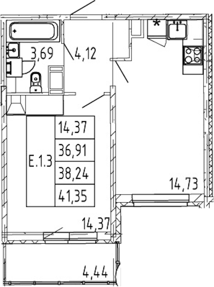 Однокомнатная квартира на 2-ом этаже 36,91 кв.м