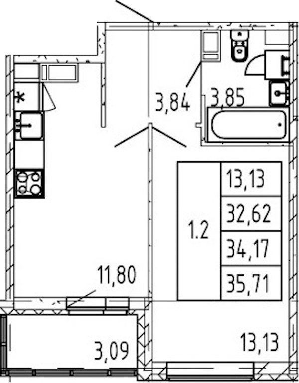 - Площадь кухни11,8 м2